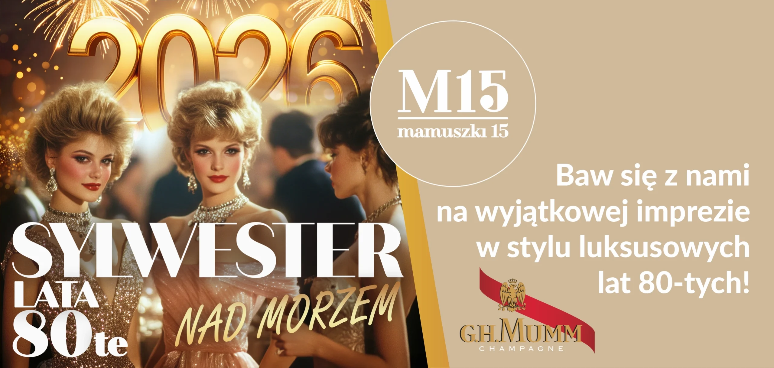 Nowy Rok tuż, tuż! Zapraszamy na wyjątkową imprezę sylwestrową w restauracji M15 w Sopocie. Przywitajcie Nowy 2026 razem z nami – kameralny Sylwester z widokiem na plażę, morze i molo, w stylu luksusowych lat 80-tych! Możecie przyjść w kreacji rodem z „Dynastii”, ale nie jest to wymagane.